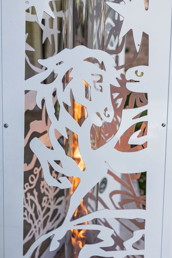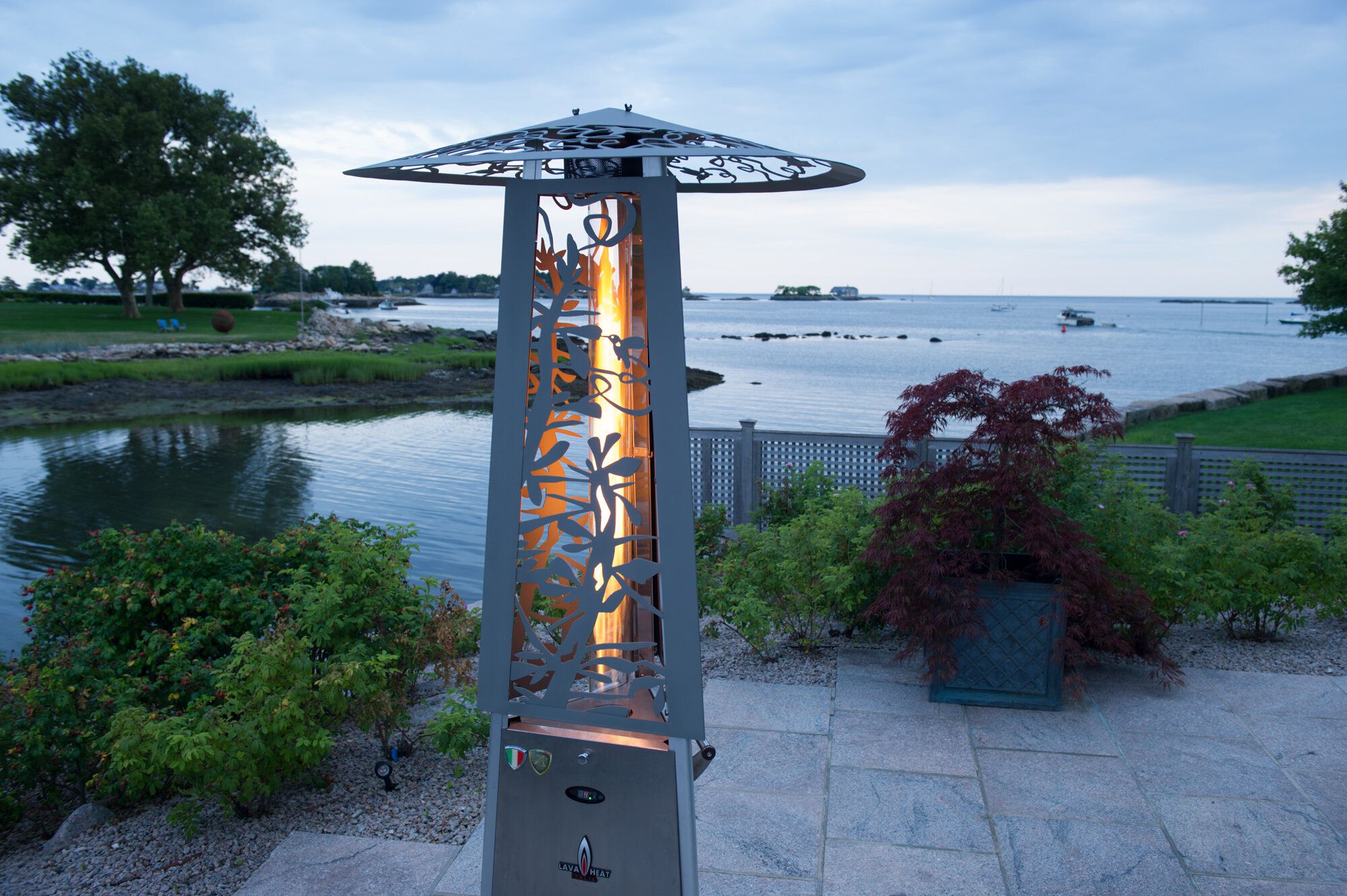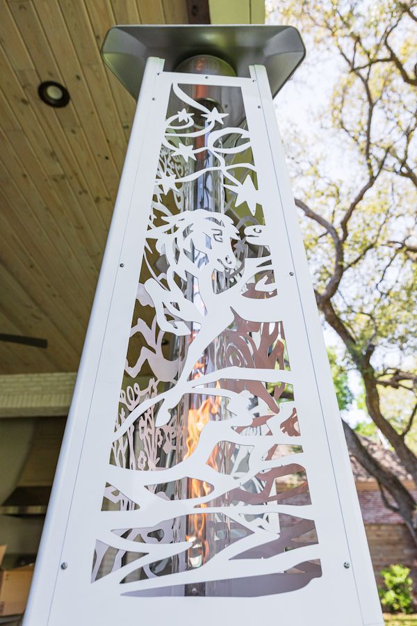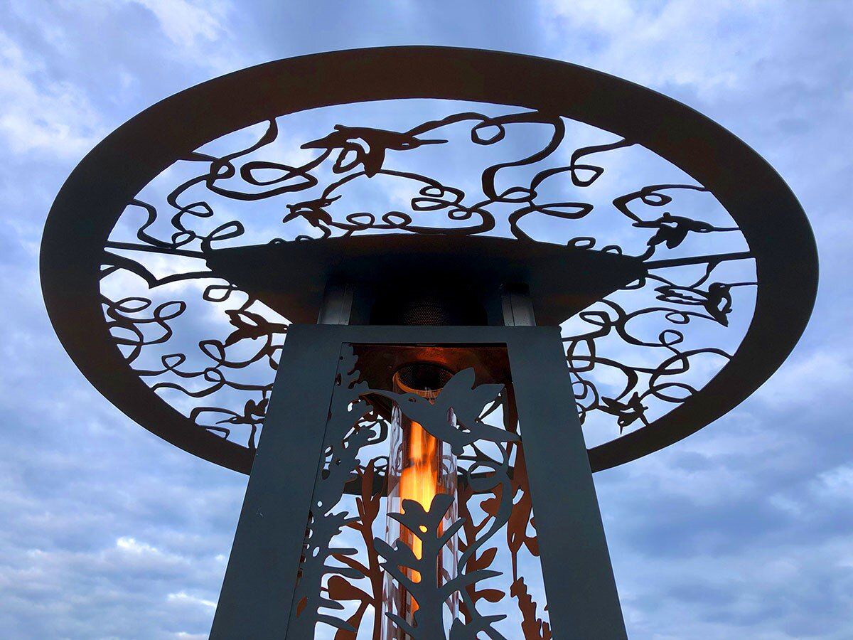 The Fire Totem is an elegant, functional fine art piece that reimagines the utilitarian patio heater. The design of this steel sleeve covers any style heater from top to bottom without changing its functionality. Fully assembled and ready for use with a patio heater included or sold as a retrofit sleeve scaleable to fit any manufactured unit.