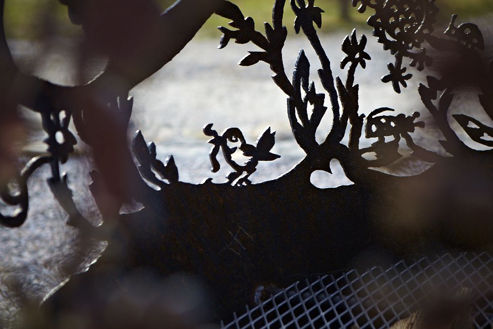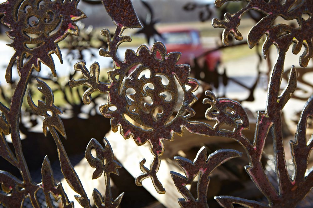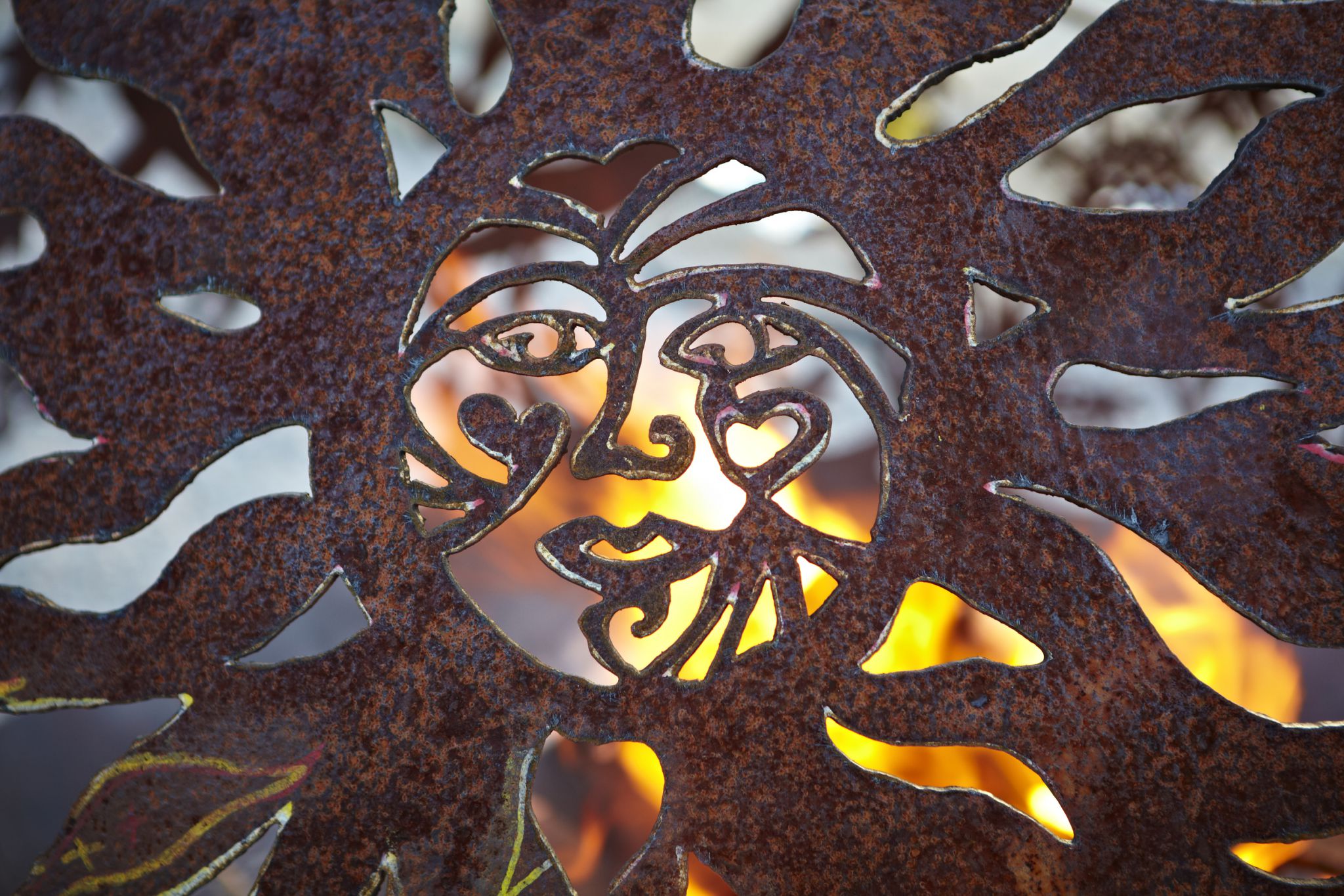 This ‘Harvest Moon’ Fireball is 58” in diameter and designed to be wood-burning. The finish is natural and weather-worn.