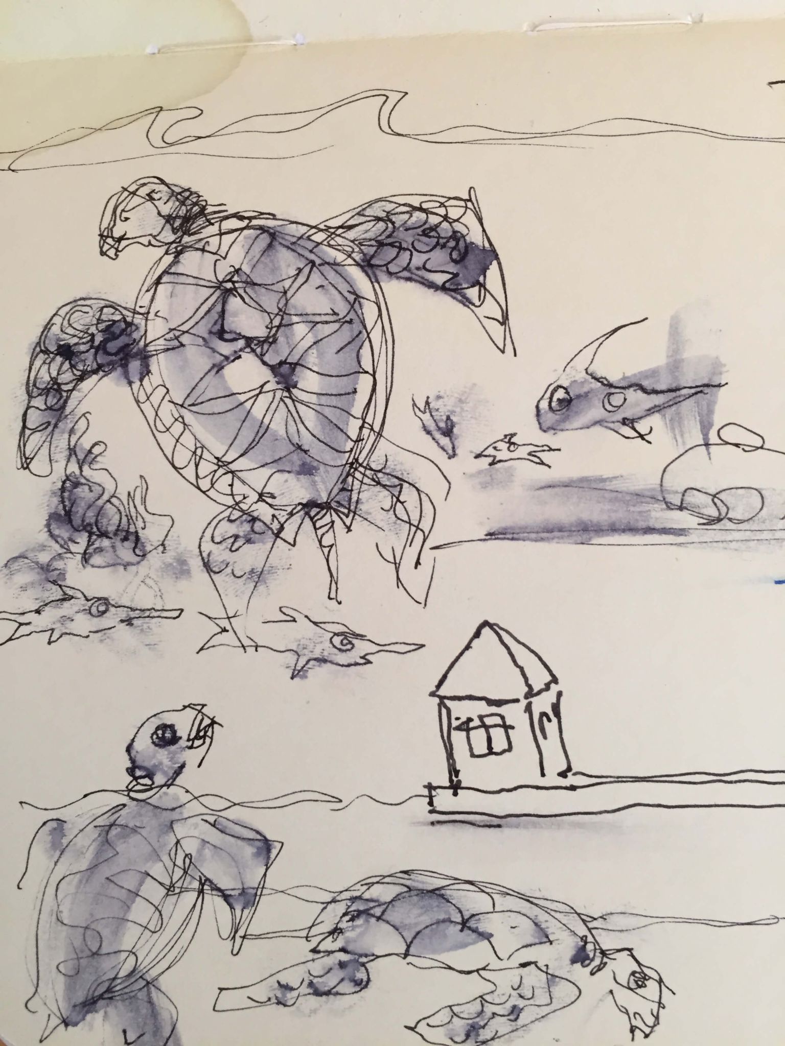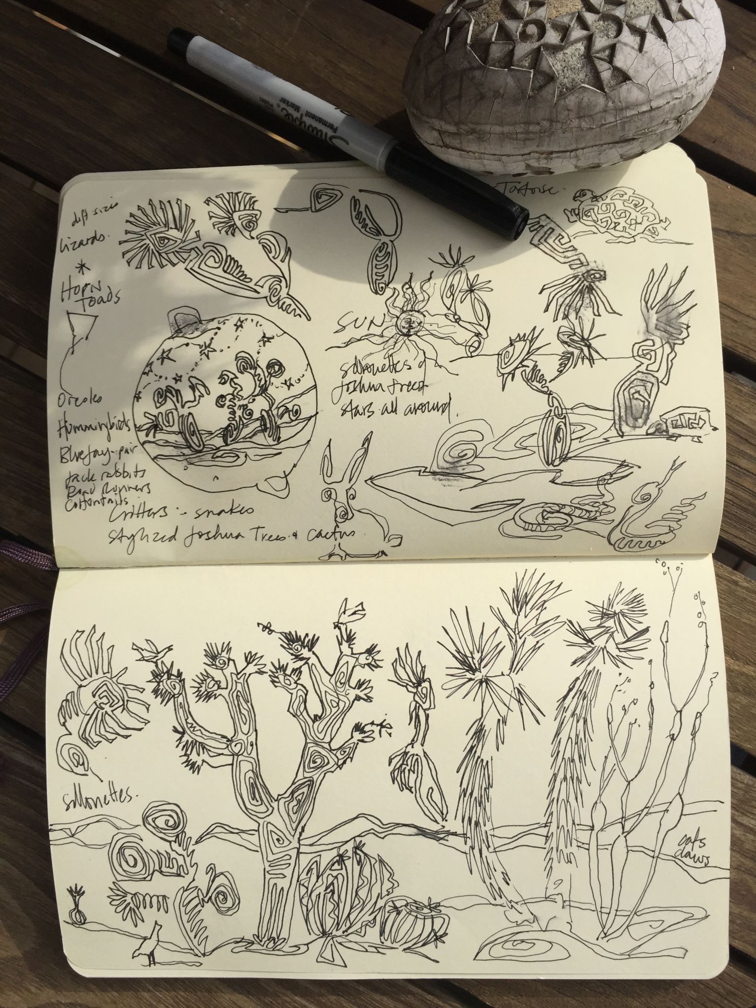 My sketchbook entries record quick impressions, inspirations, and observations from travels near and far. I use these sketches as a primary source for my work.