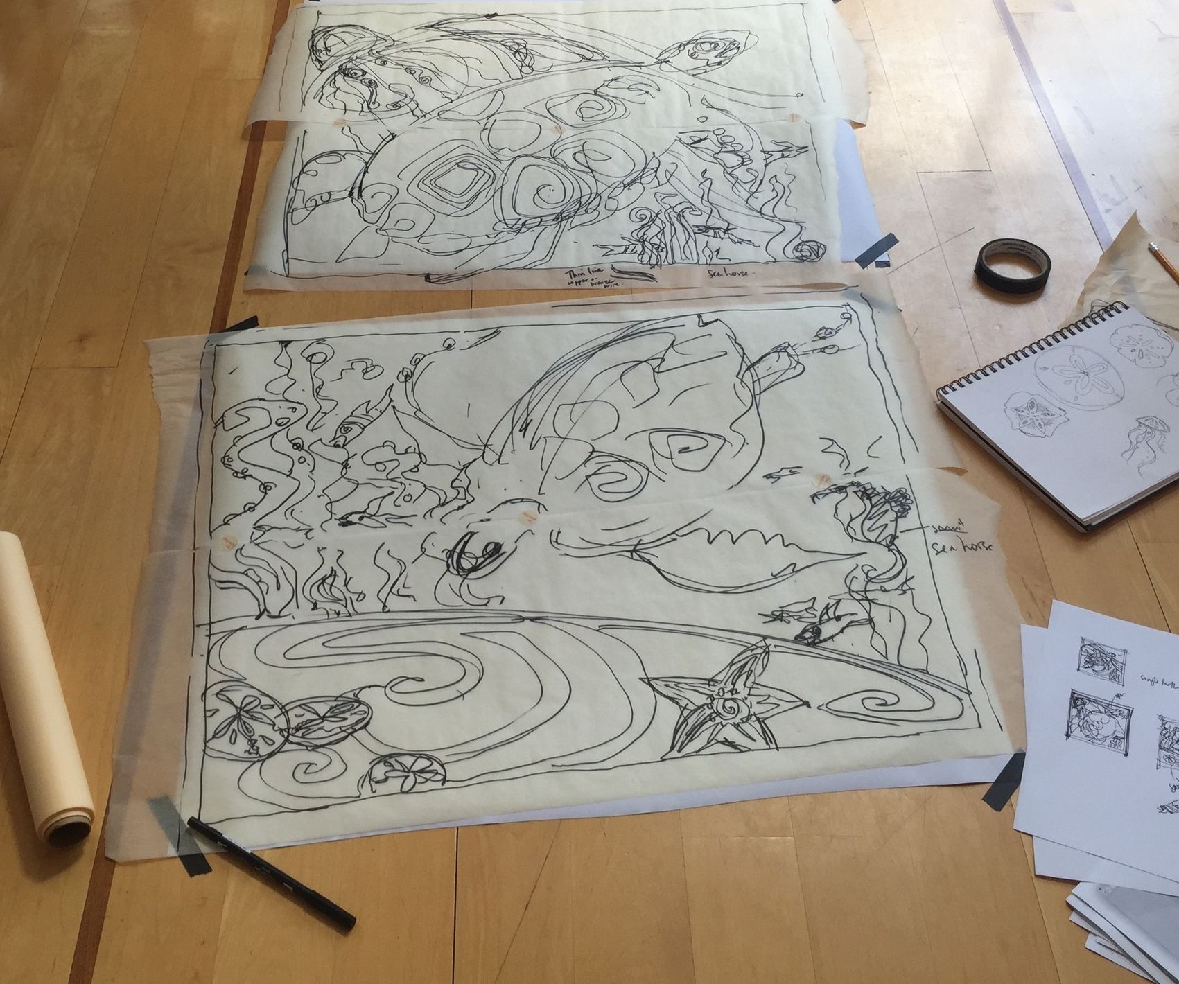 There's an immediacy to sketching that has always intrigued me. My sketches are intuitive; they capture a feeling or a moment, evocative of a place or experience. What's challenging for me as an artist is keeping that embodied fresh and soulful hand throughout the finished piece's design process.